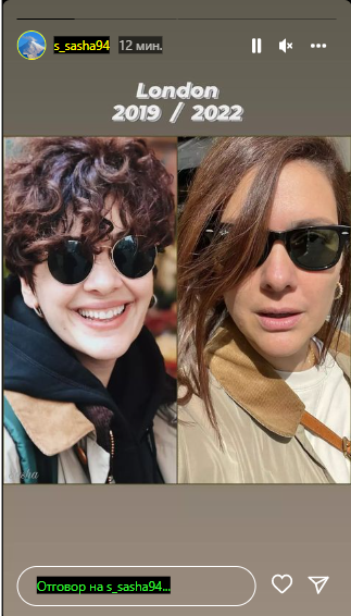 1. "Случилось вот такое (облили водой, получается?) Кто я такая.. Простите, да кто я такая, размечталась, что могу фотографировать на улицах Лондона?" 2. "Закончился спорт (утомительный спорт)"