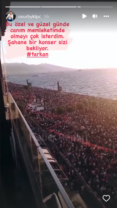 И клипчета - от репетицията на Таркан вчера в Измир. Написал е: "Я не могу описать словами, как осчастливили меня оказанные вами любовь и внимание, когда я выходил с репетиции. Я тоже очень сильно соскучился по вам, я тоже очень сильно люблю всех вас ❤"