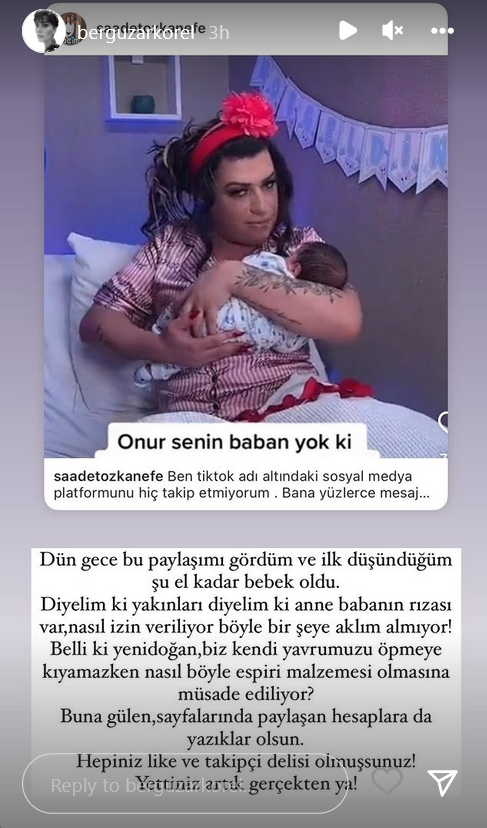"Трансгендерная женщина по имени Мюкремин Гезгин, которая месяцами рассказывала в социальных сетях о своей беременности, заявила, что вчера родила в больнице, опубликовав фотографию с ребенком на руках. После постов, закрепившихся на повестке дня соцсетей, реакция как на больницу, разрешившую съемки, так и на явления стала нарастать лавинообразно. Многие пользователи также публикуют один за другим сообщения о закрытии TikTok."/Vk/