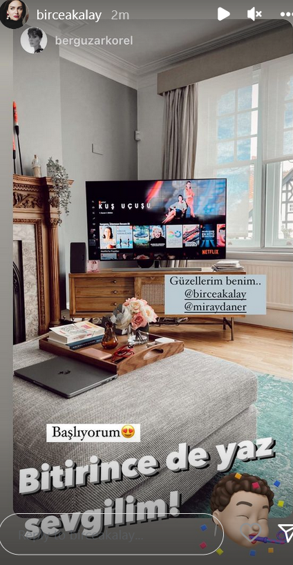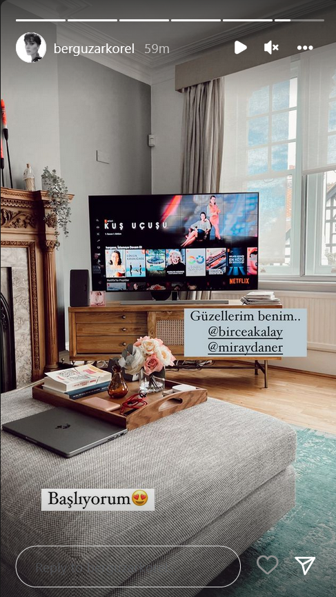 "Започвам Heart Eyes" е написала Берг, ще гледа "Полетът на птицата", а публикацията е изпратена до "моите красавици" Мирай и Бирдже. Smile