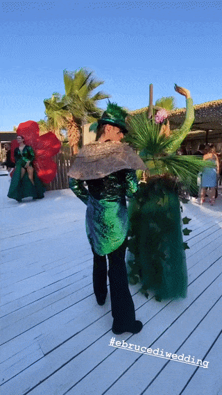 Феми, той е приятел на Дж. и е на сватбата. То не е сватба точно, а тематично парти с приятели в чест на подписа в Македония. С шатра с гадателка, май караоке... има си и състав и нещо като мариачи...