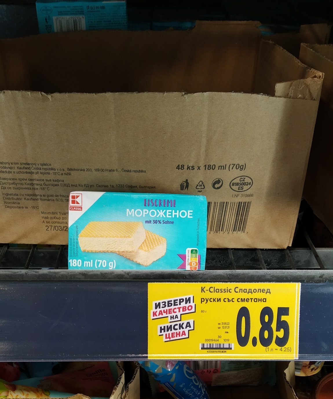 Преди години, когато Т-маркет влязоха на нашия пазар, за икономия на ток, при затваряне на магазина, изключваха всички фризери и хладилни витрини. Точно така им изглеждаха сладоледите тогава. Да не би, заради скъпия ток и К. да са взели такова решение? Много зле говори това за веригата, ако е така.