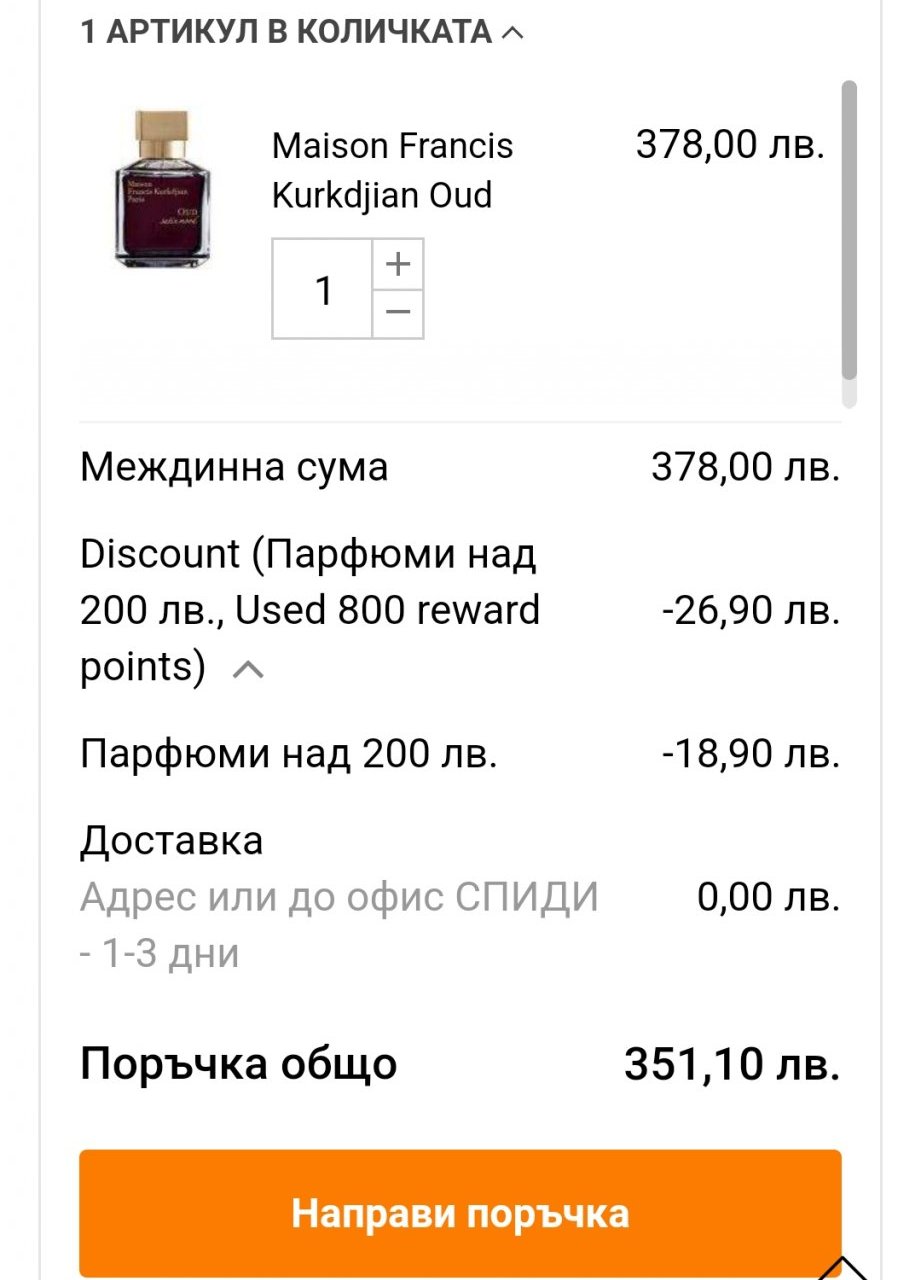Аз днес имах разочарование, но от makeup. Бях поръчала Gold Incense CH. Никъде в сайта им не пише, че предлагат продукти без опаковки, т.е. тестери. Е, това, което получих се оказа точно такова. Disappointed Не искам да бъда разбрана погрешно. Нямам нищо против тестерите, но поне да е отбелязано в сайта. Когато си поръчал продукт и очакваш да получиш такъв е неприятно да получиш тестер. Разочаровах се, ядосах се и го върнах. Rage