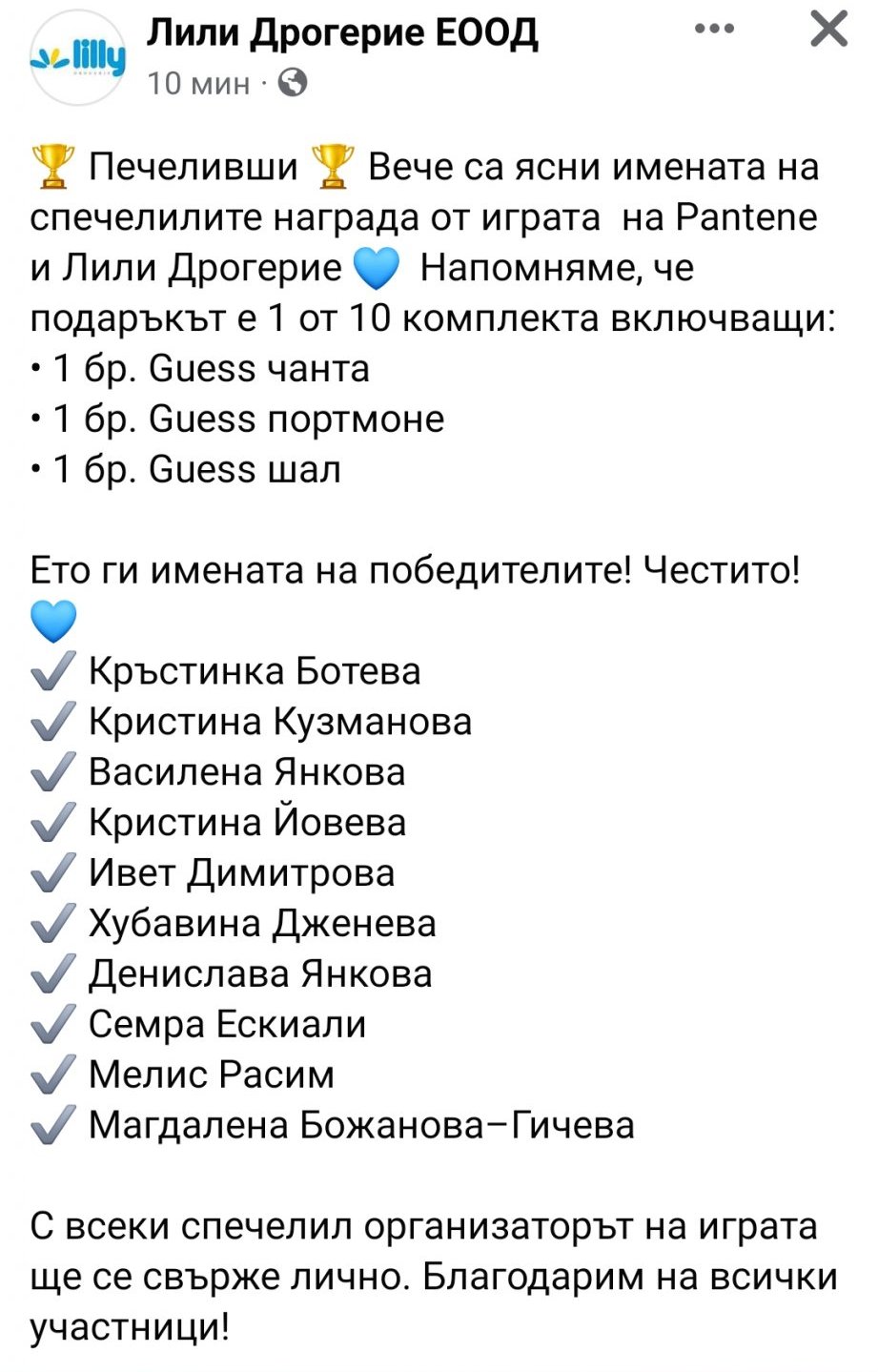 Ще моля да споделят спечелилите и получили вече награди.