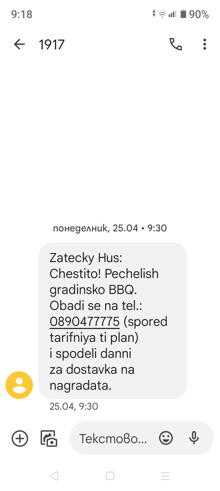 Иначе телефон би трябвало да има някой, който е получил смс, че печели, но аз не съм участвала.