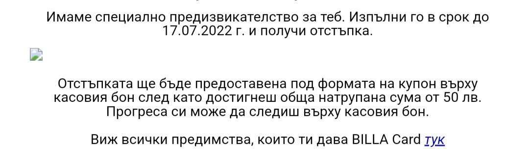 Имам същия имейл, но при мен е 5 лв отстъпка при достигане на 100 лв.