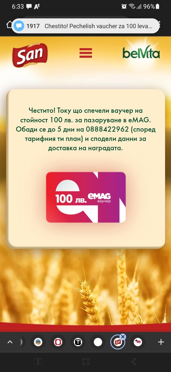 явно късмет и  аз сутрин съм регистрирала  на белвита но само две бележки и нищо ,а преди късно вечерта от регистрации съм печелила на кока кола ,пиринско и емека