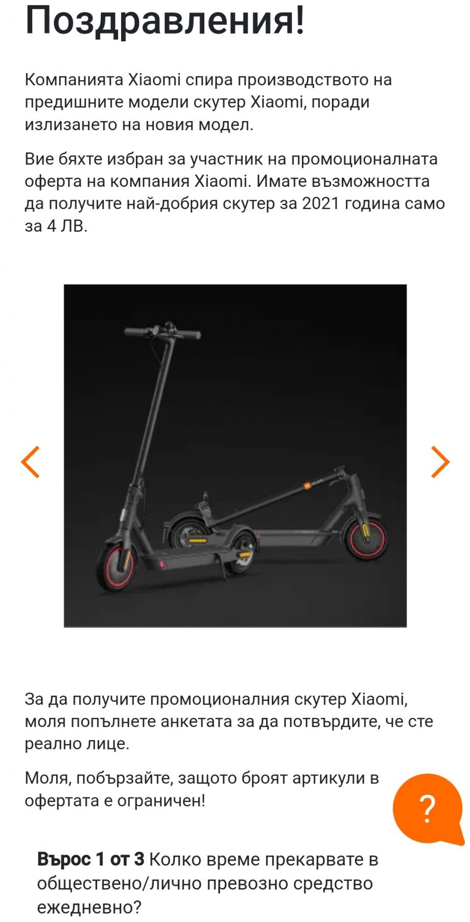 На тия и аз се чудех точно къде е далаверата, за тротинетките, щото имаше уж легитимни, т.е истински профили, писали, че са ги получили и снимки. Да, ама снимките не ми изглеждат ясни, коментарите със съмнения изчезват, снимките ми изглеждат като от апартаменти не в България. За 4 лв тротинетка няма как да продадат, те за 100 да я пуснат ще има твърде много желаещи и ще трябва да има томбола, камо ли за 4. Според мен е схема за вземане на 10/15 лв от доставка, не знам…