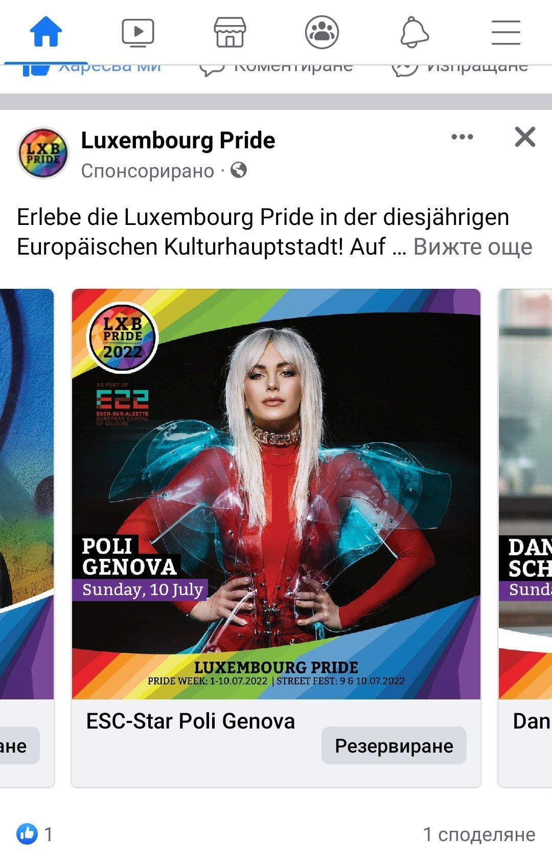 Поли Генова ще бъде част от програмата на Luxembourg Pride