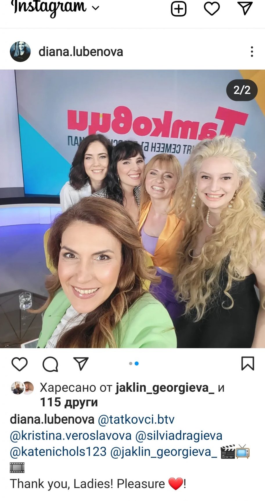 Актрисите от Татковци при Диана Любенова - Силвия Драгиева не можах да я позная. Откога е русокоса и дългокоса?