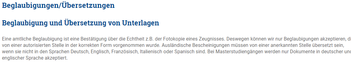 Chrissy, със сигурност съм го срещала на някои от множеството следени в  годините немски сайтове на унита/платформи за кандидатстване. Къде точно не съм сигурна, не ми се и рови много, но ето на прима виста за пример Уни Вюрцбург, хем пак Бавария, Regierungsbezirk Unterfranken..За бакалаври даже се надскачат английския и френския като допустими без превод, приемат се даже и документи на италиански, испански..За мастер само е сведено до 2 езика - немски или английски.