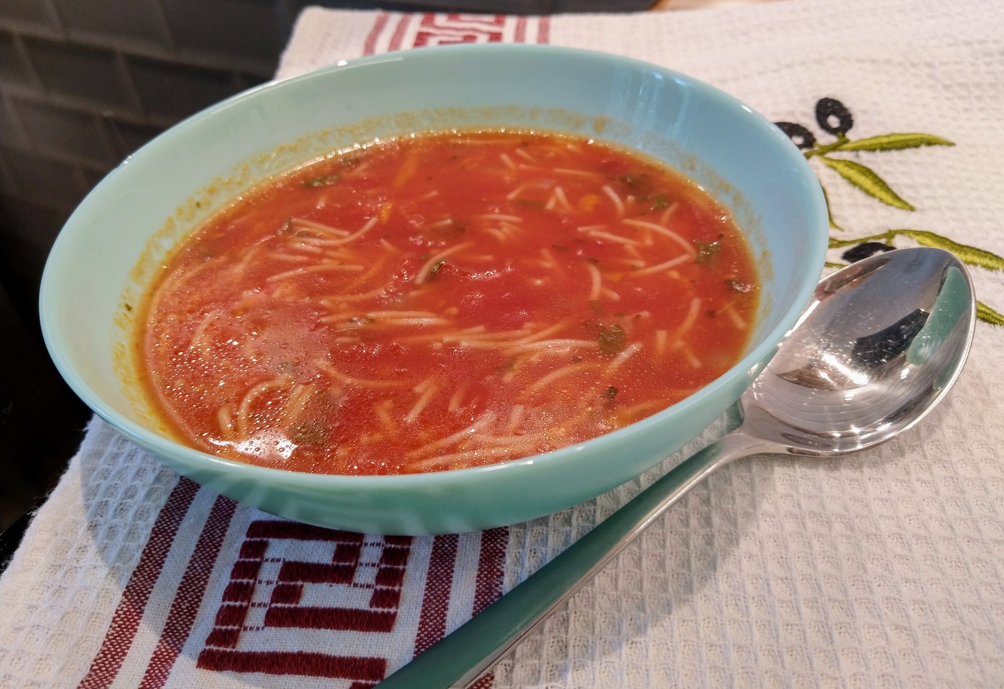 Към края за още 5-10мин. слагам зехтин, магданоз, сол и щипка захар и фиде една шепа от финото.
