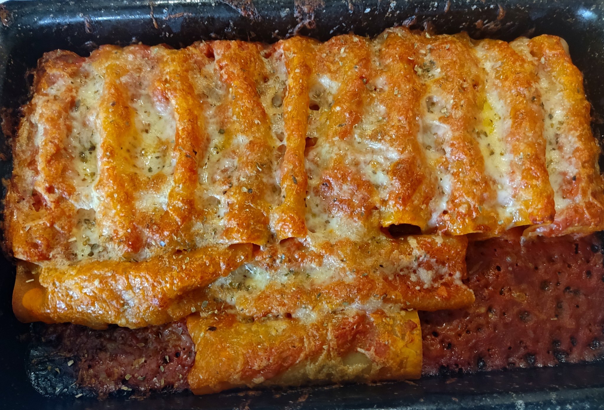 Остана ми кайма и с нея напълних и едни канелони, само където нямах подходяща правоъгълна тавичка 😀