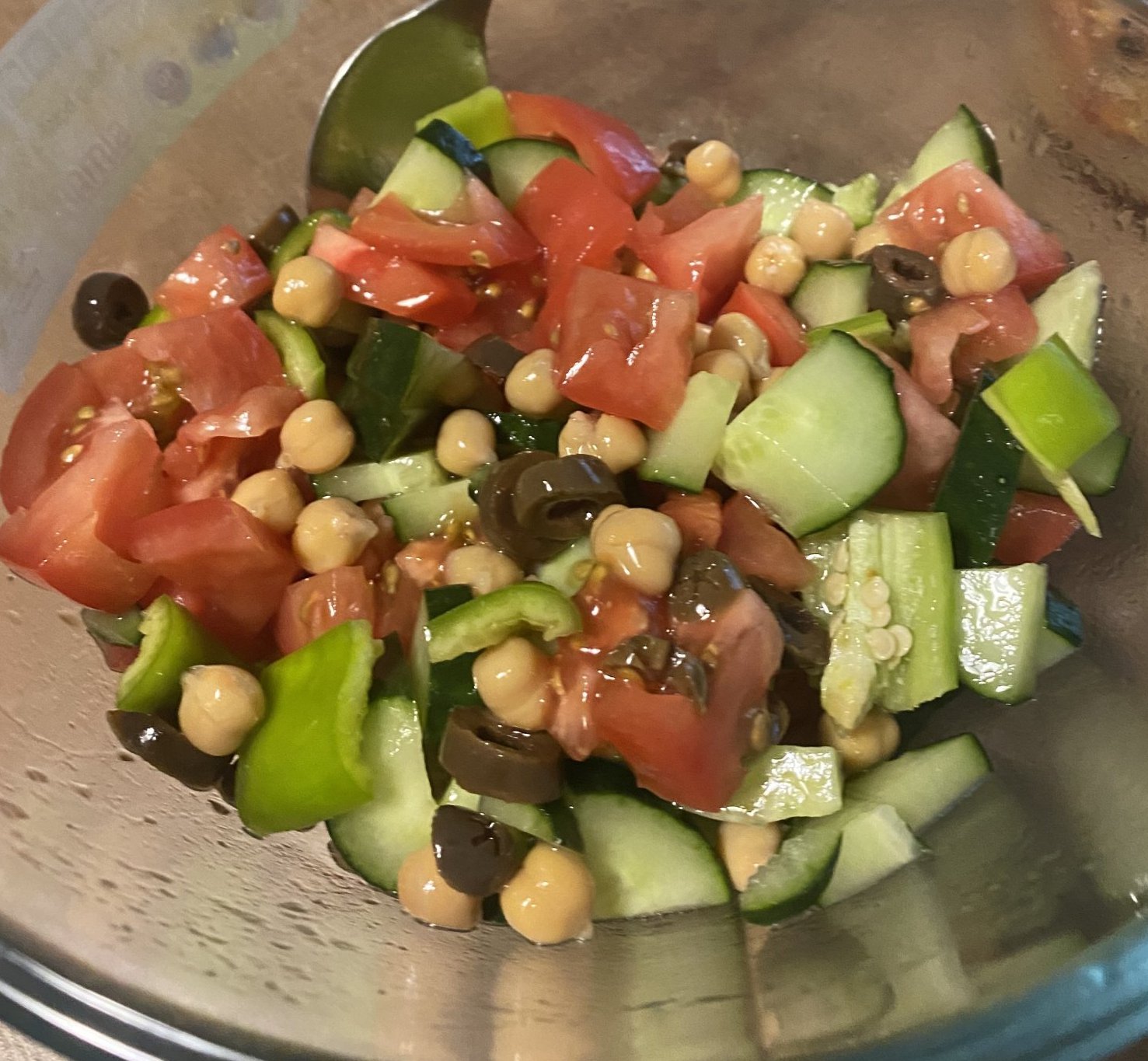 Днес на салата и пържени картофи, имах за обях телешко с грах, но не се сетих да снимам.