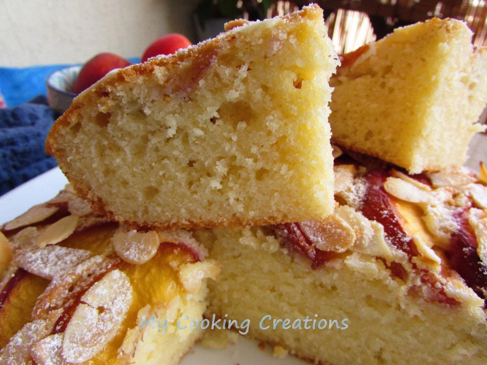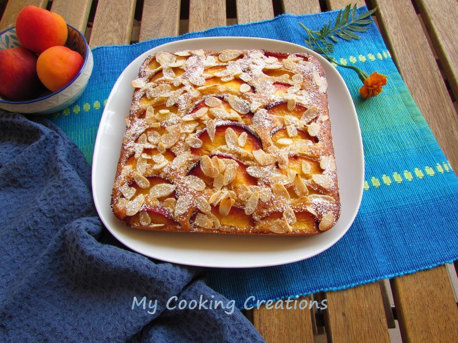 За следобедното кафе и неделната закуска приготвих много лесен и ароматен сладкиш с праскови.