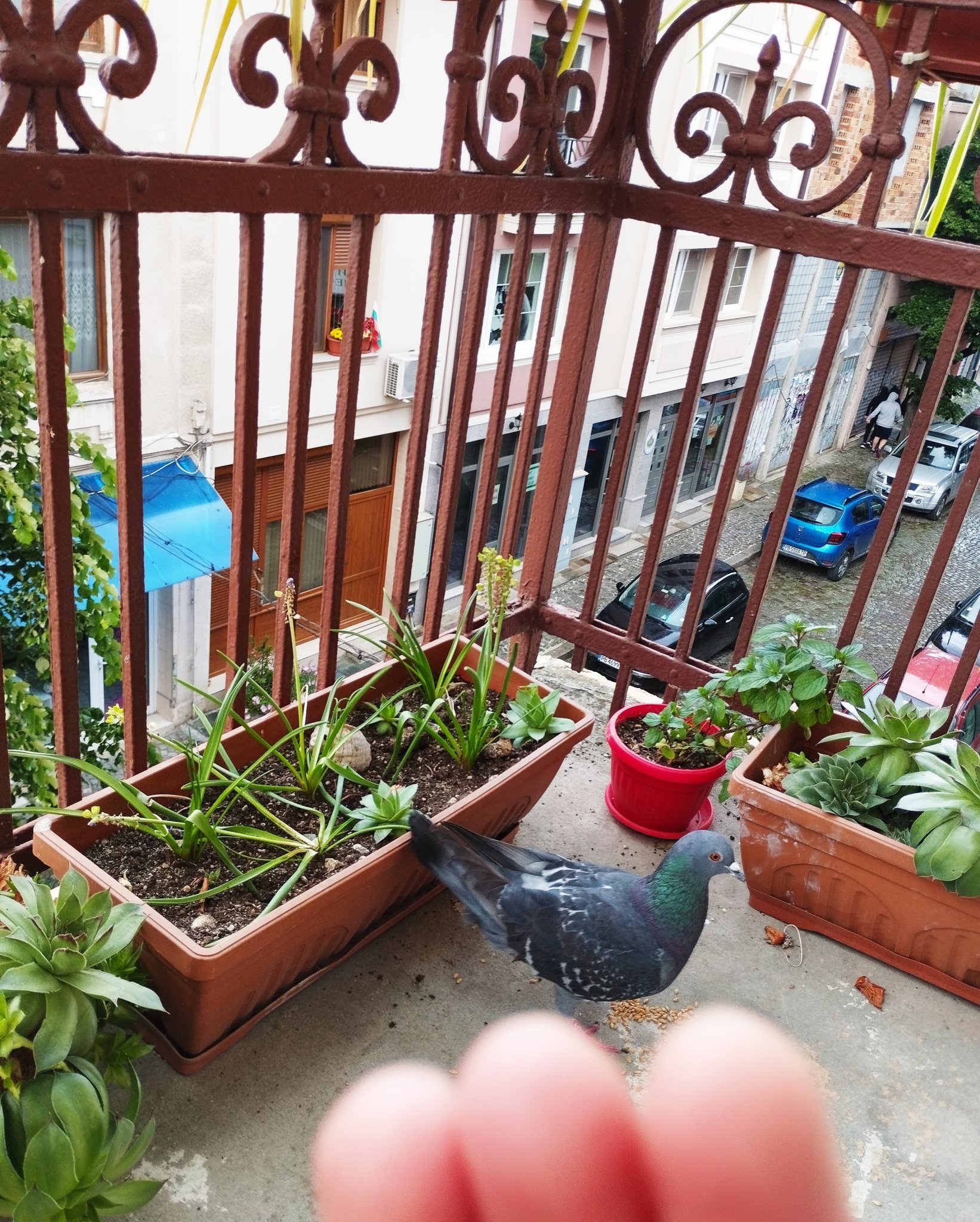 Веднъж в старото ми жилище излязох на терасата малко рязко и стреснах един гълъб, който отлетя и в същия момент снесе яйце Joy