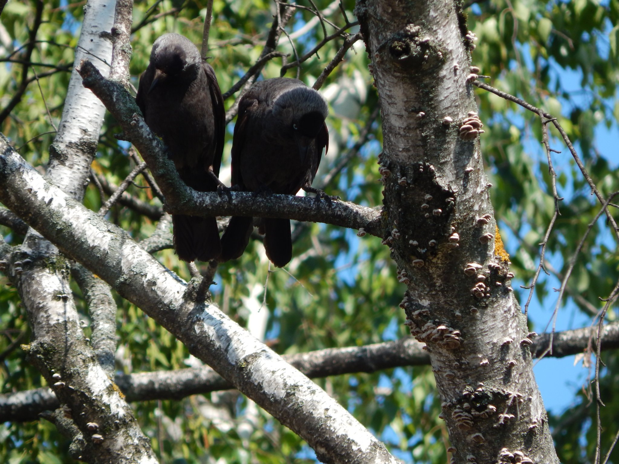 Днес снимах две влюбени гарги - седяха си една до друга и се ухажваха: