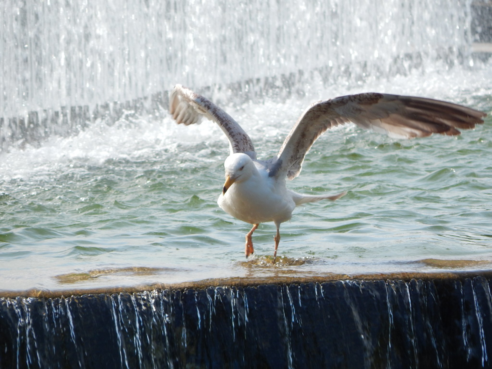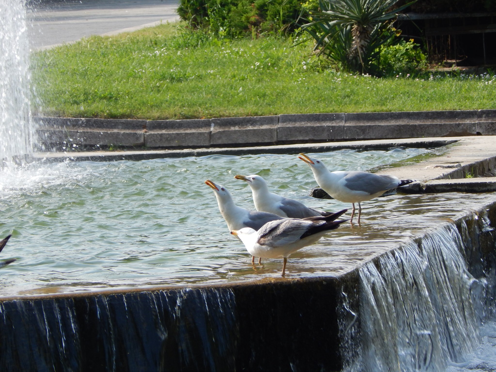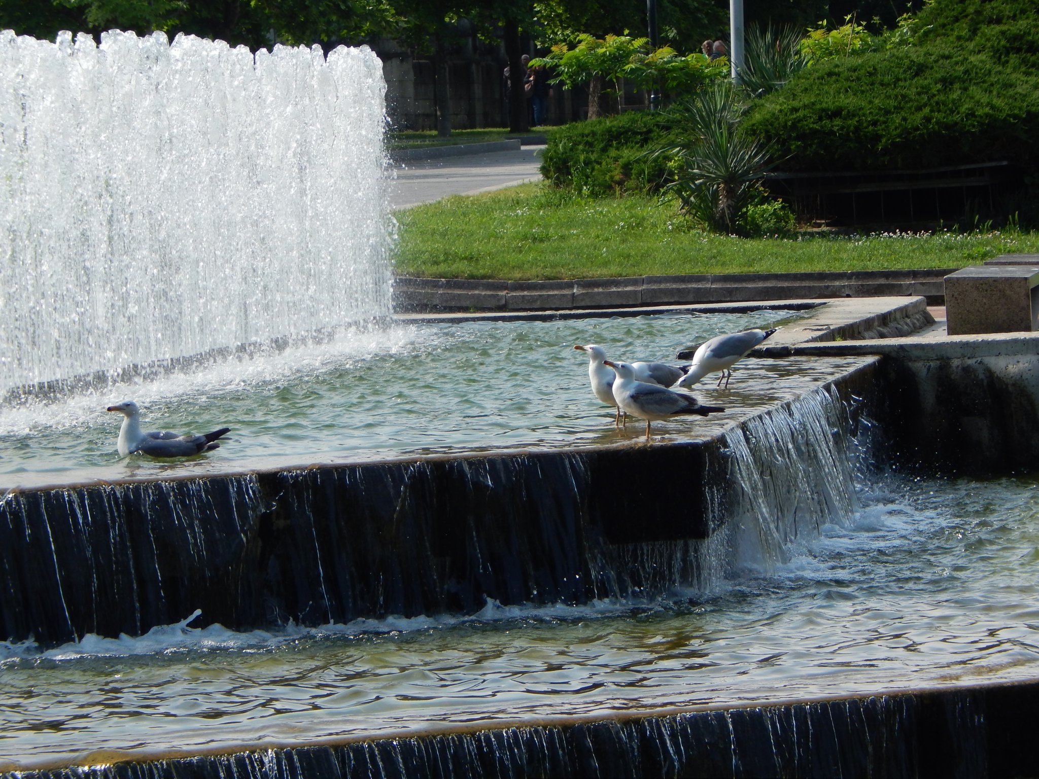 Днес пак снимах гларусите във фонтаните - знам, че и преди съм публикувала техни снимки, но ми харесва да ги гледам как се радват на водата - пият и си вдигат главите нагоре, все едно си правят гаргара, плуват, а понякога и се гмуркат (горките - не подозират за съществуването на морето):