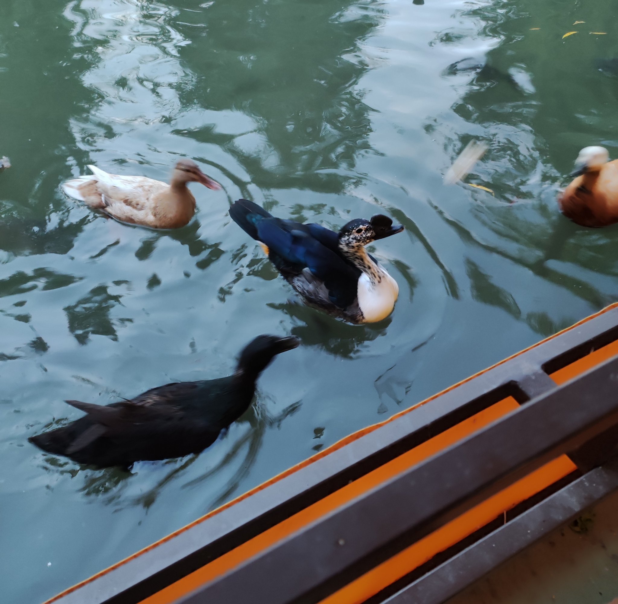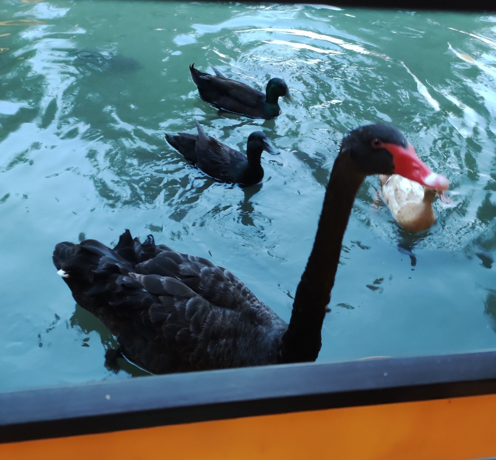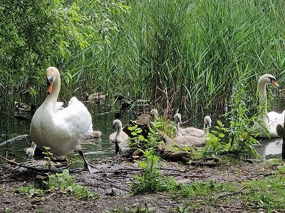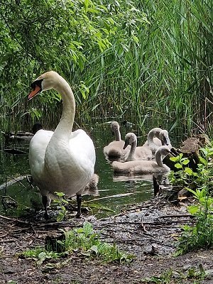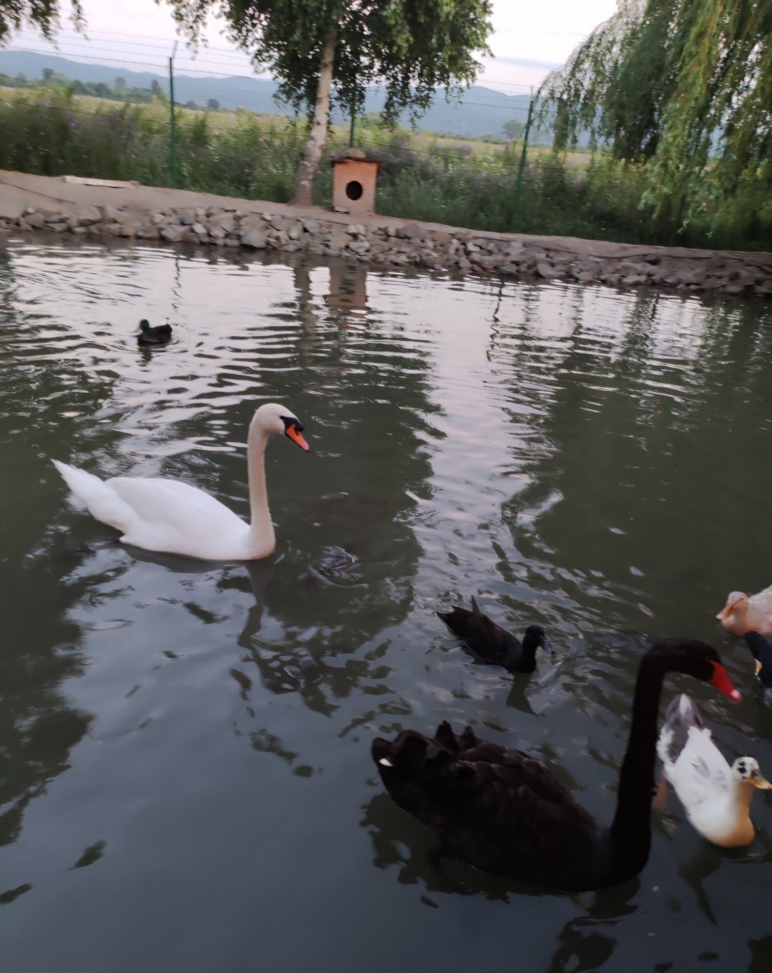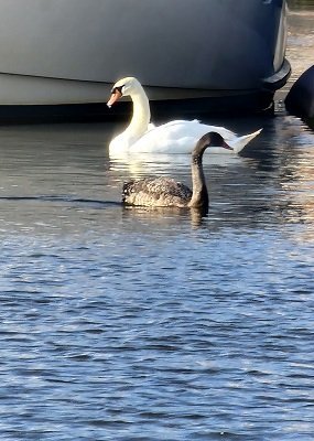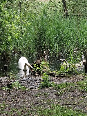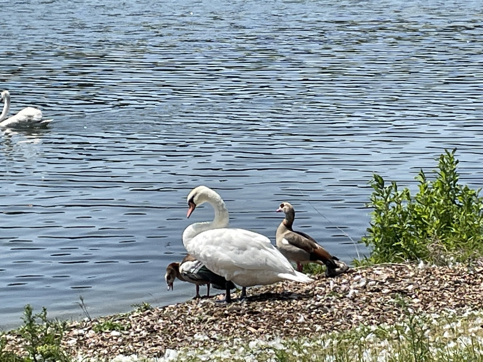 От вчера в парка, групичка хора опита да храни лебедите, хвърлиха им някакви картофки, но се появи гларус и излапа всичко. Лебедът му съскаше, но гларусът много упорит и се върна няколко пъти. Хората продължиха да хвърлят картофки и се забавляваха на двубоя, макар че лебедът беше доста сдържан, явно не искаше да се прави на гамен пред децата си, а и може би предпочиташе да не свикват от малки с макдоналдс Satisfied