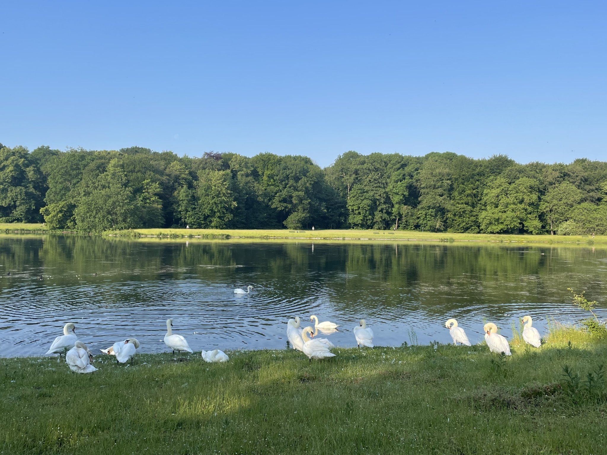 От онзи ден в парка. Лебеди по целия бряг на езерото. Не можах да ги хвана всички в обектива, но бяха много красива гледка.