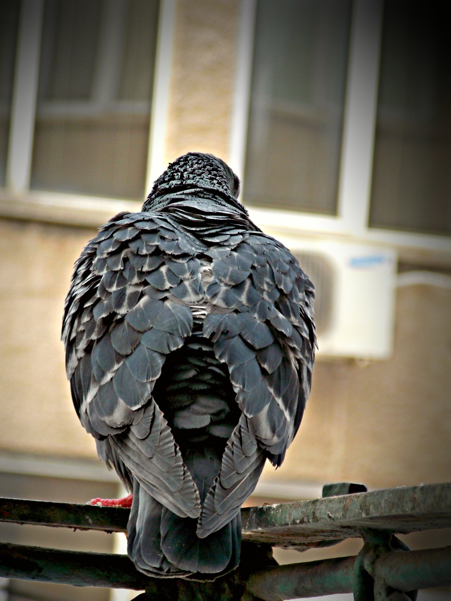 Сутринта имах един изключително любопитен гълъб на балкона. Стоя така, гледа, оглежда... Появих се да го щракна и избяга. Не знам кого очакваше, но май не бях аз Grinning