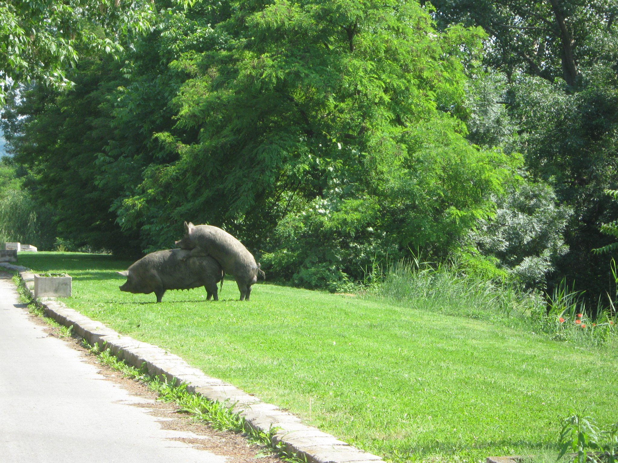 На втората снимка са една влюбена двойка, заснета близо до нас. Не знам дали се вижда колко всъщност са големи тези прасета, но бяха огромни.