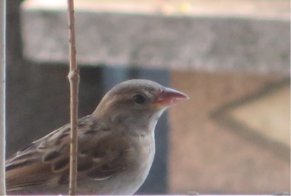 При мен само врабчета идват (преди идваха и чавки - това са малки гарги, но напоследък ги няма). Ето едно от преди няколко дни (женско):