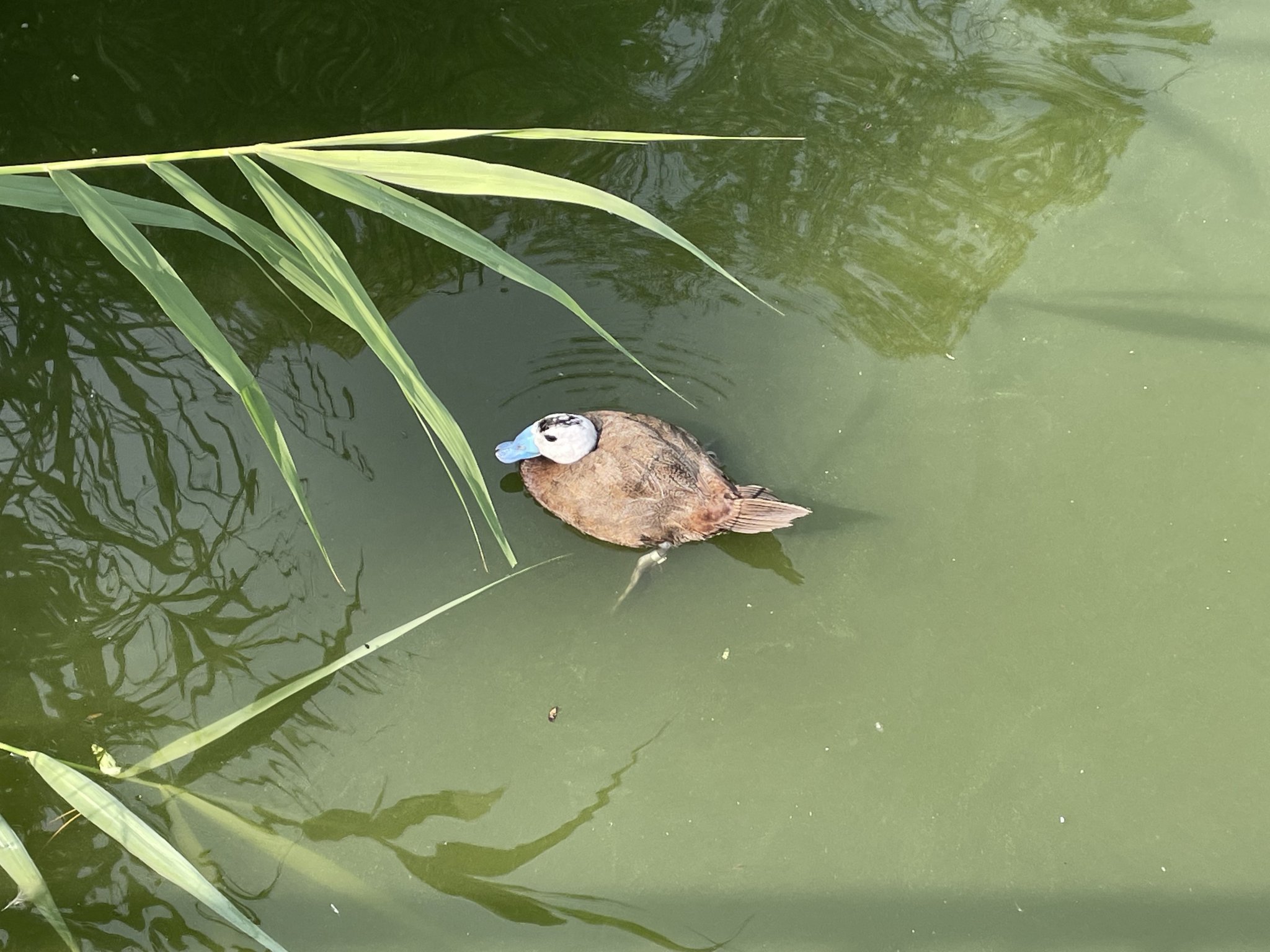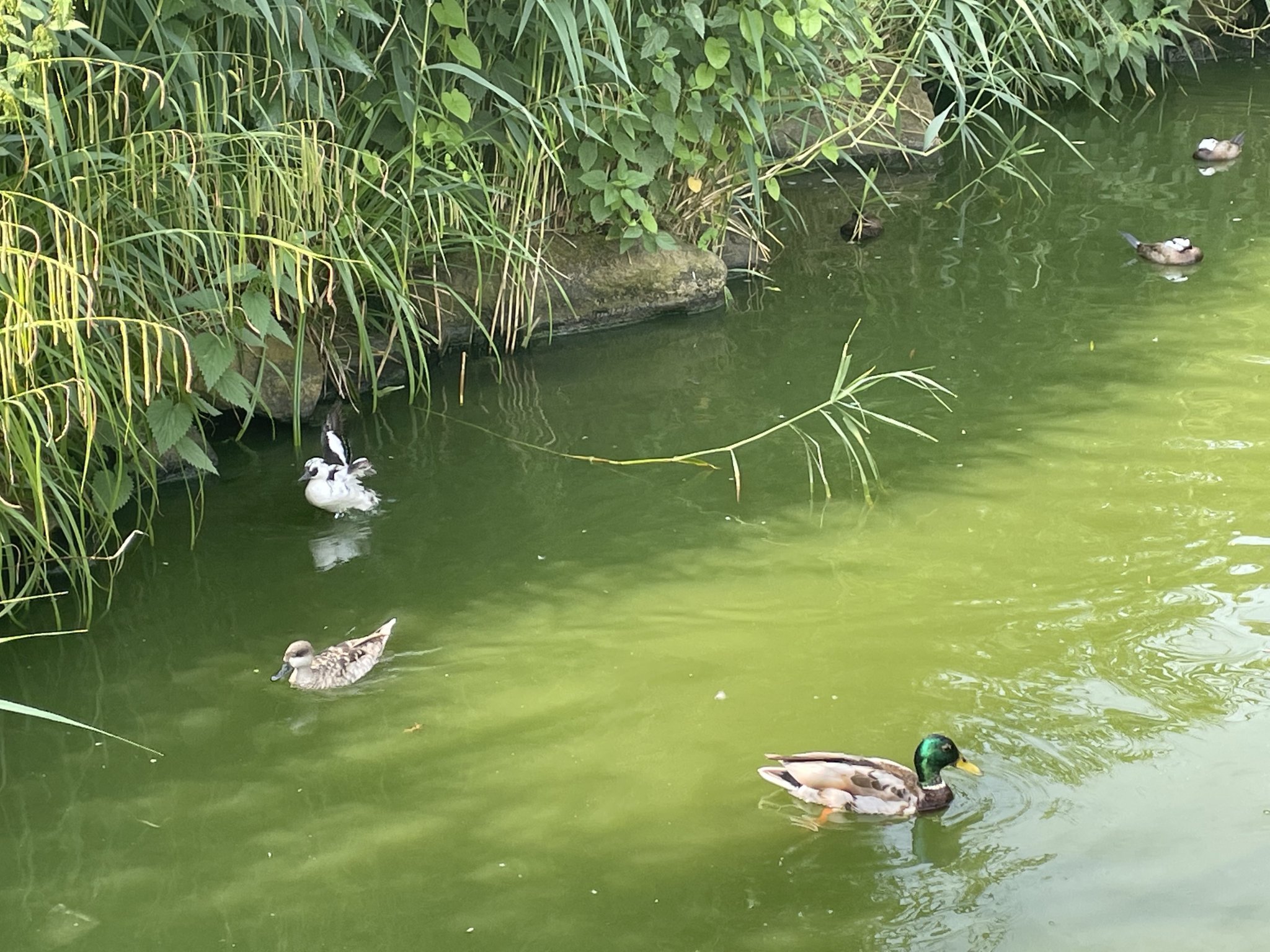 Шарени патета и гъсоци. А това бяло-черното е такъв гмурец и толкова срамежлив пред фотоапарата, че по-добра снимка просто не успях да му направя. Винаги докато наглася за близък кадър и той вече се е гмурнал. А беше много красив!