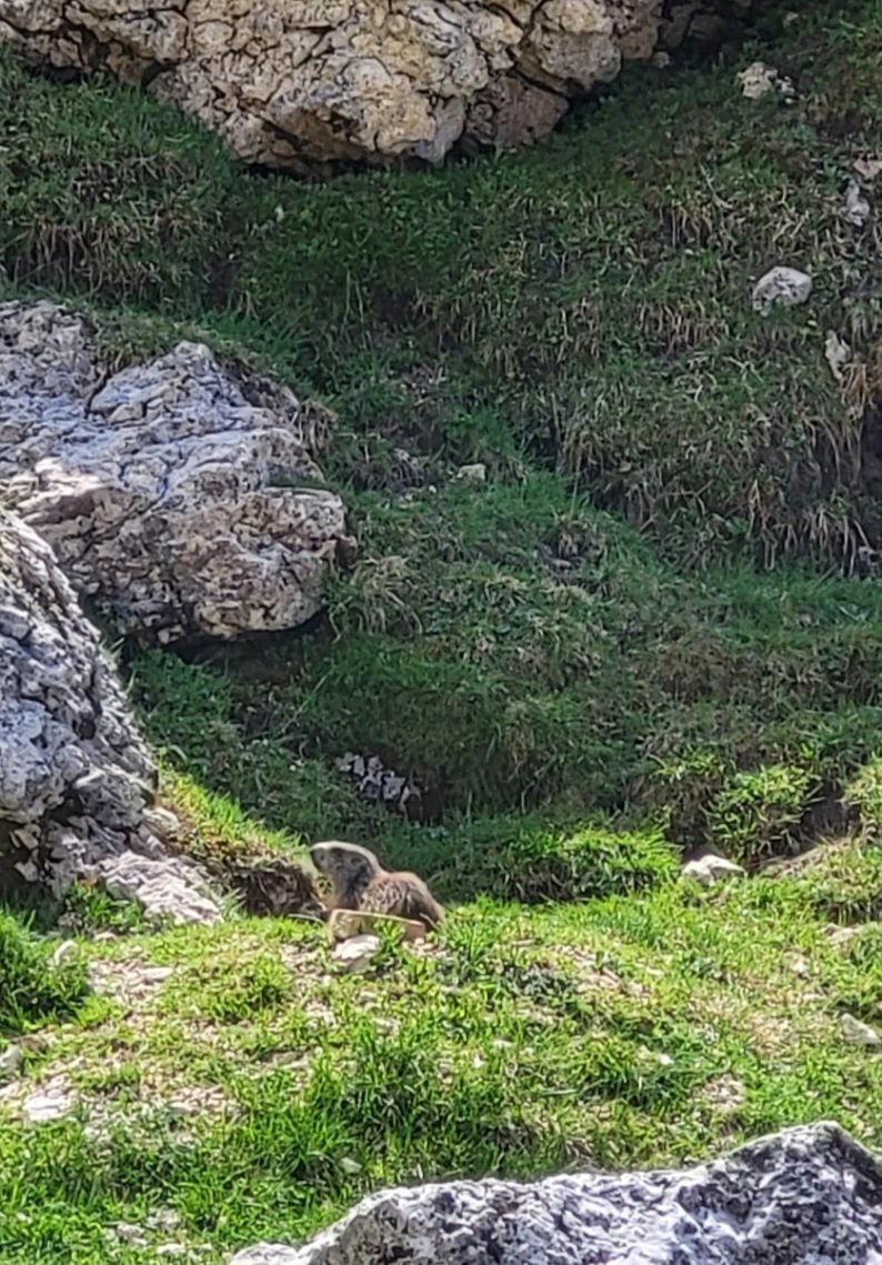 Среща с мармотче  в Доломити/ 2 000м. Снимката е с увеличение и не много качествена, но все пак- ето го!