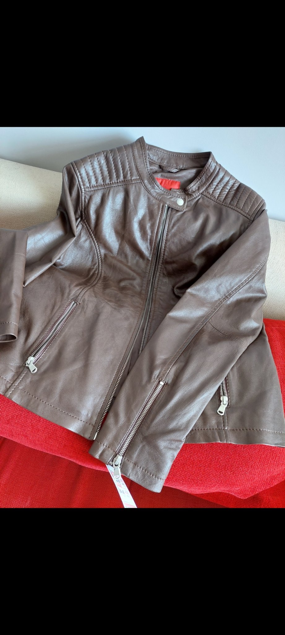 Кожено яке в шоколадов цвят, на половин цена от реален магазин. Цветът не е излязъл точно.