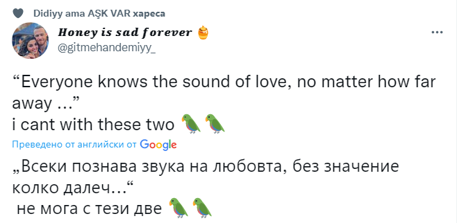 Гледам епизода, като съм зарибила и моето момче. Той за първи път го гледа, не го е гледал преди. И знаете ли какво ми каза за сцената с лимона? Че изведнъж се е почувствал сякаш наистина е навън, сред природата, като тези птички които пеят  го карат да се чувства щастлив. Попитах го, дали харесва тази двойка и дали според него им се получава. (Умишлено не съм му казала, че те са се влюбили по време на сериала). А той веднага ми изтреля, че тези двамата май имат връзка извън сериала. "Виж ги само какви флуиди хвърчат от тях".