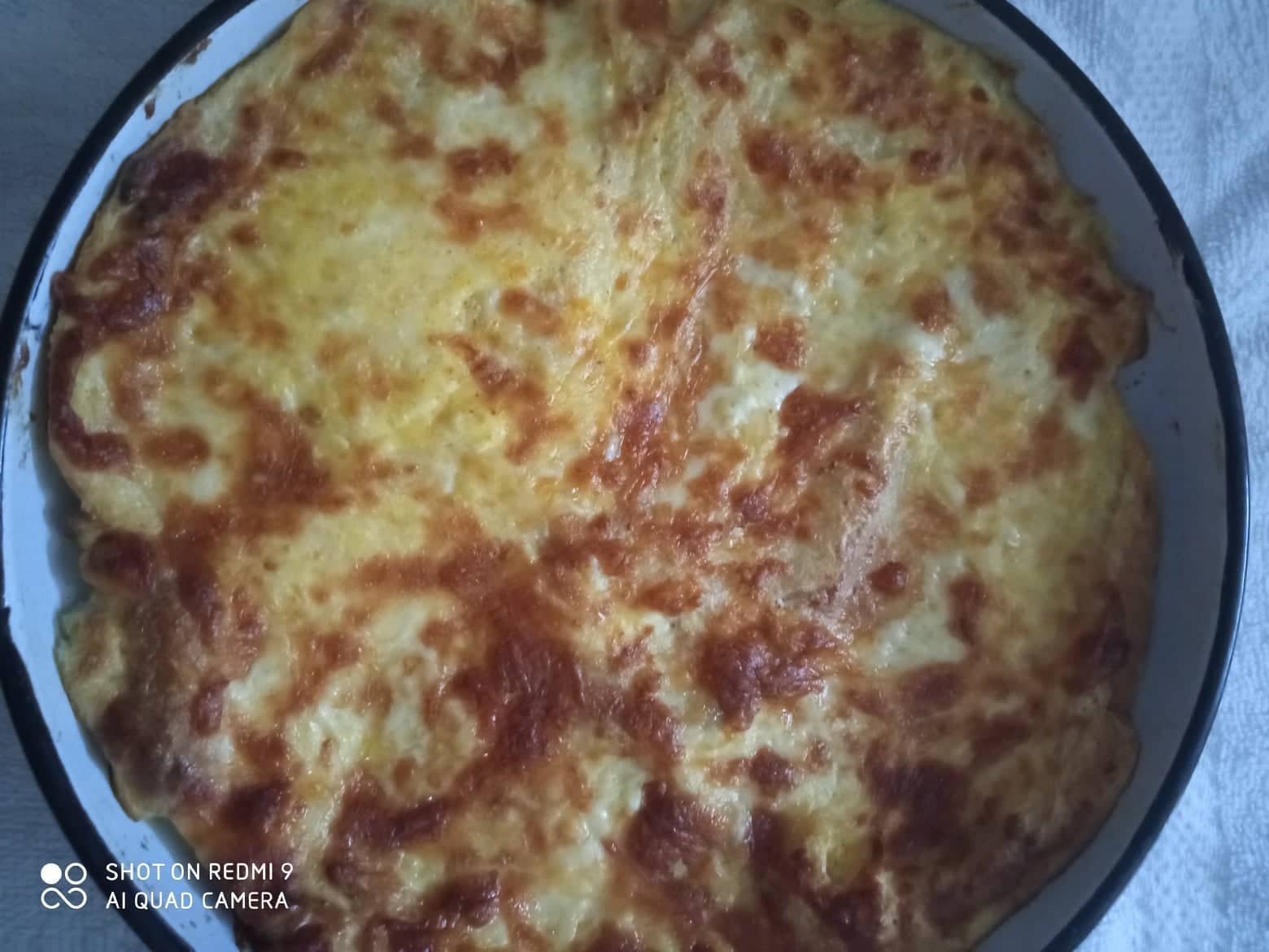 В намазана с масло тава се реди плътно хляб, сместа от останалите продукти се разбива и се изсипва. Пече се около15 мин на 180 градуса. Аз ползвам еър фрайър.