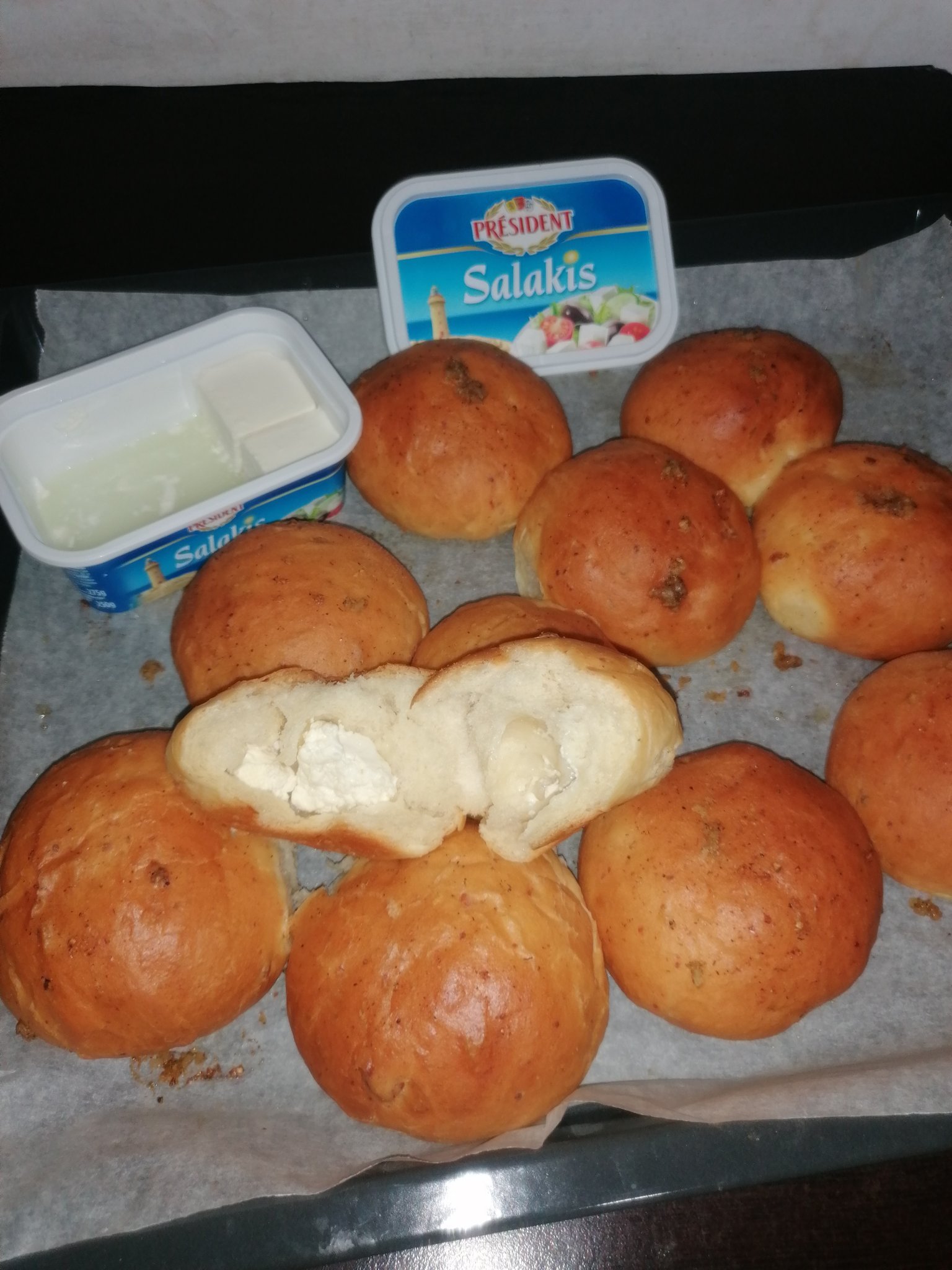 Чеснови питки с масло, чесън и шарена сол! 350гр.брашно, 220мл.мляко,ч.л.сол, ч.л.захар, 7гр. мая, с.л.зехтин и едно яйце. Замесих тесто, оставих да втаса дакото си удвои обема, разделих на 10 топчета, оставих пак да втасат докато приготвя маслото и чесъна! За мазане отгоре две скилидки чесън пресован, една супена лъжица масло , една чаена лъжица шарена сол и малко олио! Пекох питките за 15 минути във загрята фурна на 220градуса. После ги намазах с разтопеното масло с чесън и шарена сол, оставих да се пекат за още две минути и резултатът е повече от добър!