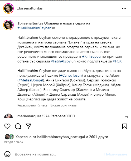 Както беше коментирала негова бивша приятелка,че Халил я е използвал и после зарязал,и така ще постъпи със Съла.Тогава я оплюхме и не допускахме,че Халил е способен на това,но ето че се появи Нанука с парите си и купи ролята си и Халил застана с нея и изостави Съла.Явно този мъж минава през жени ,за да израства в професионален план.А и го видяхме в Грузия.Нанука го въведе и запозна с хора от музикалния бранш и сигурно му е уредила проекти.Не че е много добър певец,но нека има успех.