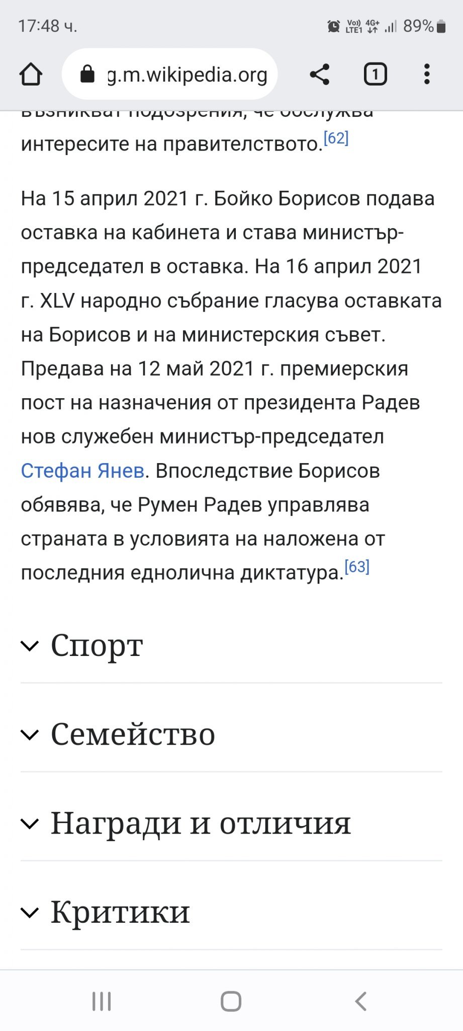 Последното правителство на Борисов слезе от власт на 12 май 2021 г.Октомври управлява Стефан Янев като служебен министър-председател.Проверявайте фактите преди да пишете.