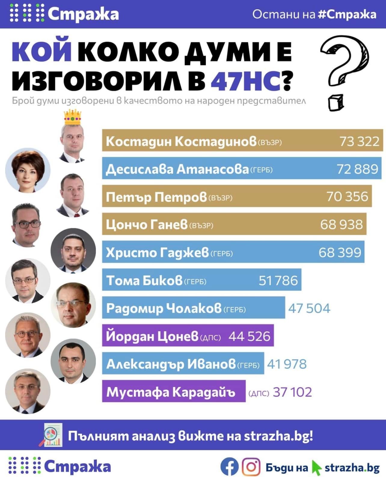 Аз не изключвам да има хора, които си "вършат работата". И понеже дефиниция на последното лично не знам в контекста на народен представител, така например тези данни може да се тълкува двояко. Някой може да каже, че   най-бъбривите са най-работни Wink.
