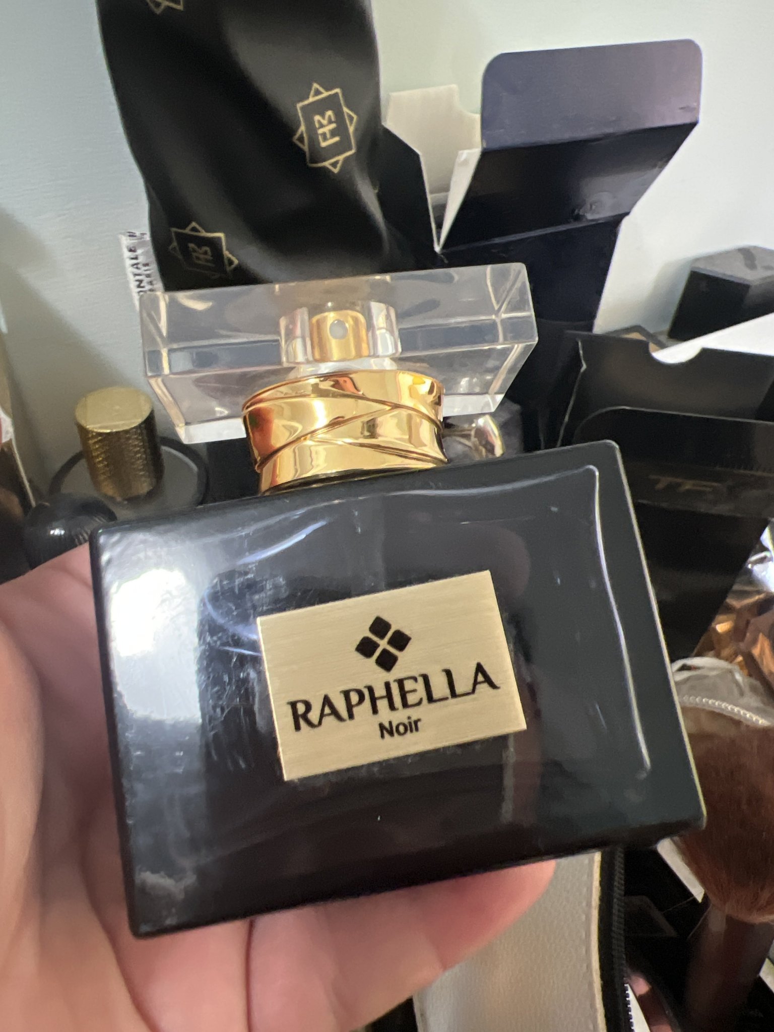 Здравейте! Ще имам нужда от Вашето компетентно мнение и съдействие. Имам един парфюм Рафела, някаква ноар колекция. Има останало съвсем малко на дъното и за моя изненада днес като отворих сайта видях, че е 50лв., което за имитационна парфюмерия, че и за 50мл ми се струва пълен абсурд. Прикачвам снимка, ще се радвам, ако някой от Вас може да ми помогне и да каже дали е на някой парфюм имитация или техен си “бъркоч”. Иначе аромата е “бомба” в бутилка…