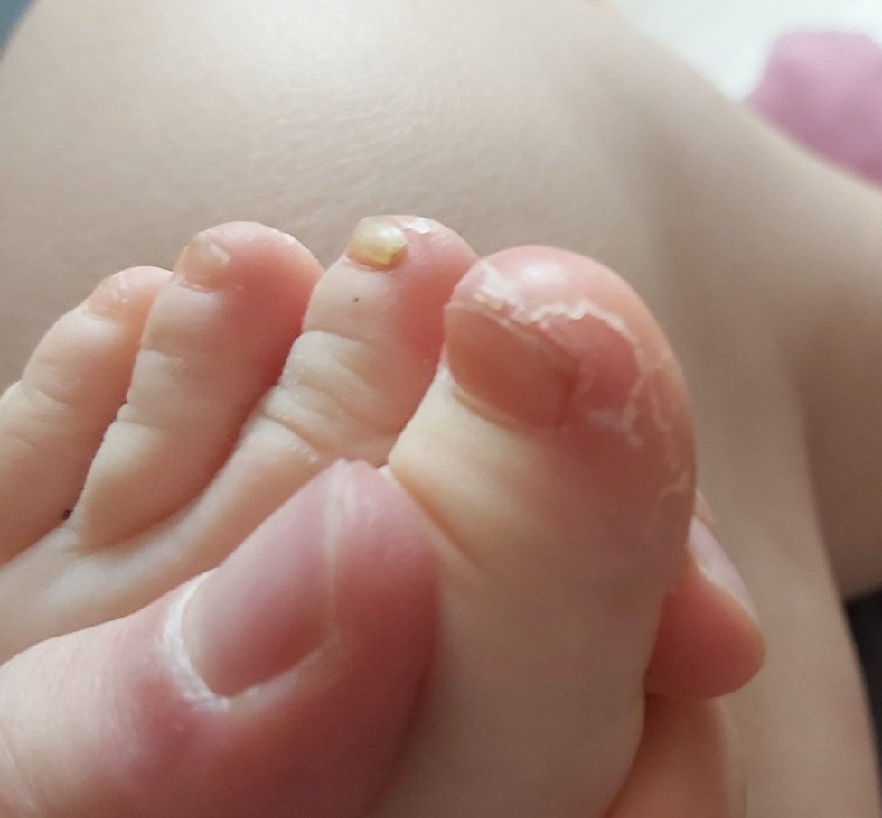 Здравейте, това гъбички ли са? Никога не съм имала на краката и не знам как изглеждат. Нокътят на показалеца беше син от ударено, тръгна да израства нормално и стана такъв и сега се е обелил така палеца.