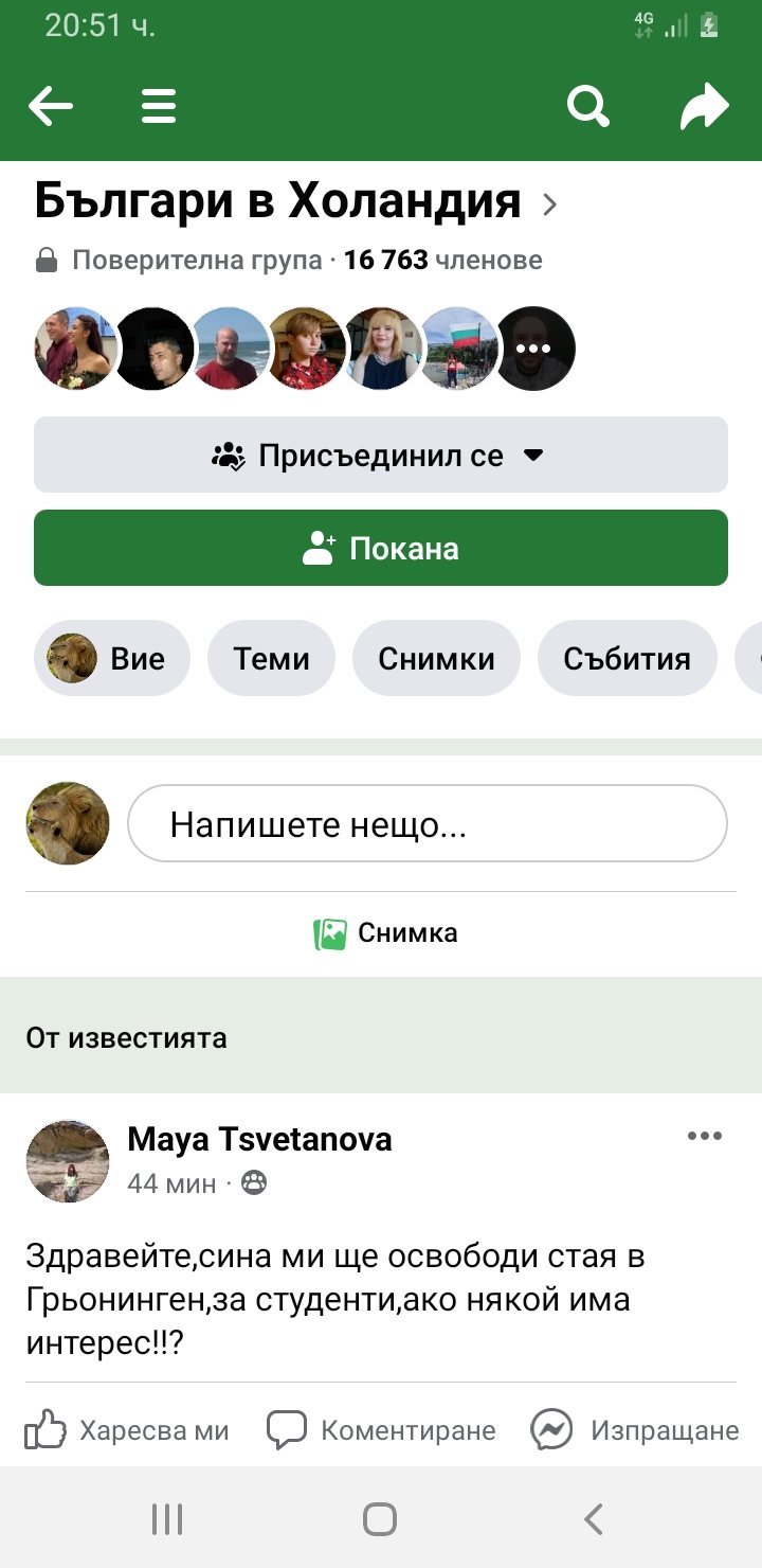 Здравейте, синът ми ще бъде втора година в Утрехт. Досега ползваше квартира на SSH за първокурсници, но е до края на август. Всичките му опити да намери квартира от септември засега са неуспешни. За другите квартири на SSH се регистрира преди година и още не може да се вреди за оглед. Ако някой търси съквартирант, нека ми пише на лични. Той е общителен, чистник, не е парти тип, вероятно от тази година и ще работи. Ще бъда благодарна за всякаква помощ и идеи!