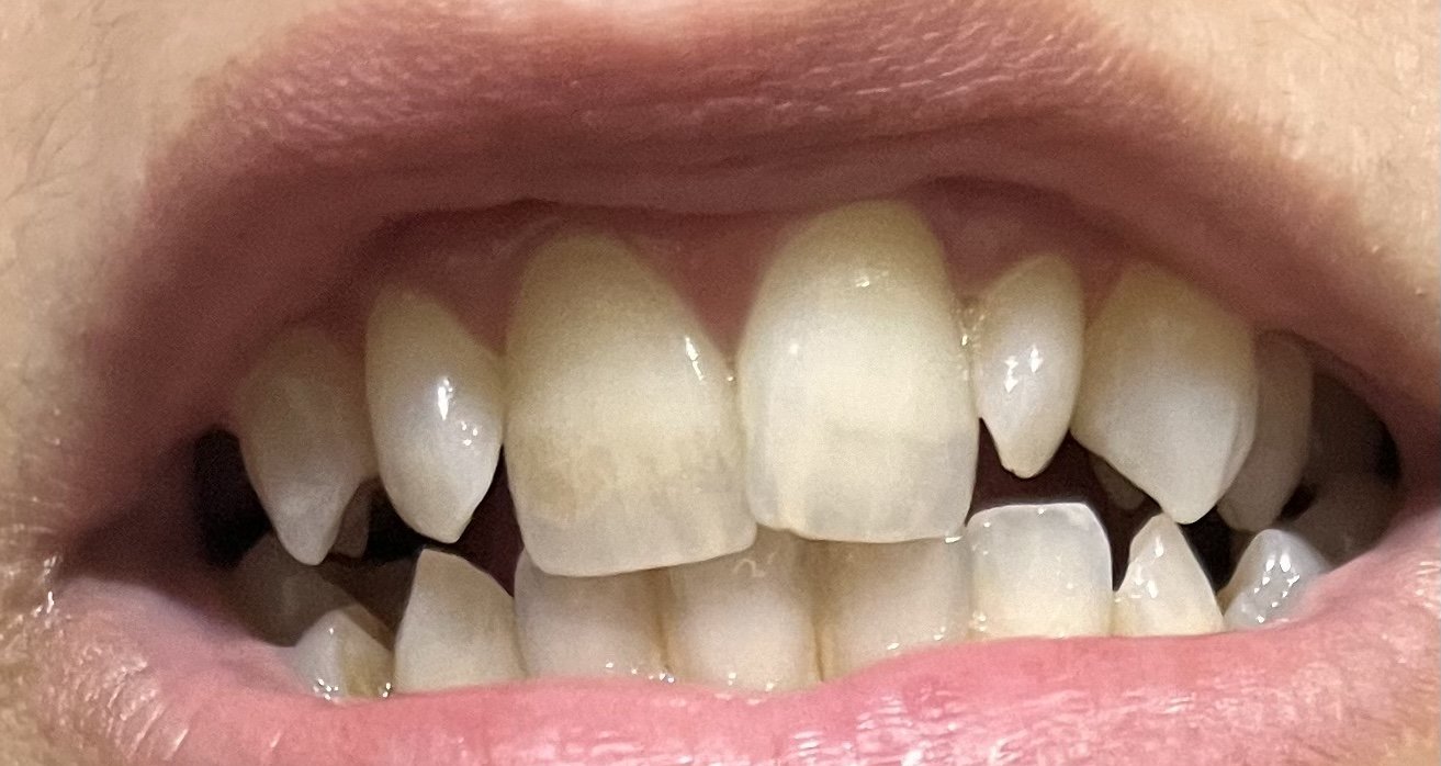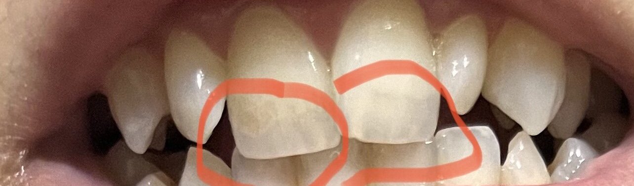 По скоро се притеснявам защото са леко по-тъмни, нещо като кафяво и е напречно на самото зъбче..Тук се вижда колко ясно изразено е
