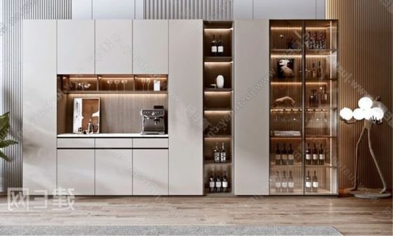 На стената, където е дървесната композиция сега бих разположила шкафове за съхранение, виртини, виноохладител и т.н. Може в комплект с мокър плот за коктейли и напитки.