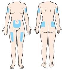 Вътрешната страна на бедрата - не, но горната предна - да. Когато ги биех от външната страна ми ставаха синини и ме болеше ужасно, но пробвайте, явно са различни препоръките и графиките и за това прилагам няколко примера от интернет по темата “къде да инжектирам нмх”, по които съм се водила и са работили при мен - като изключим ръцете, външната част на бедрата и задната част на паласките, където си правех синини.