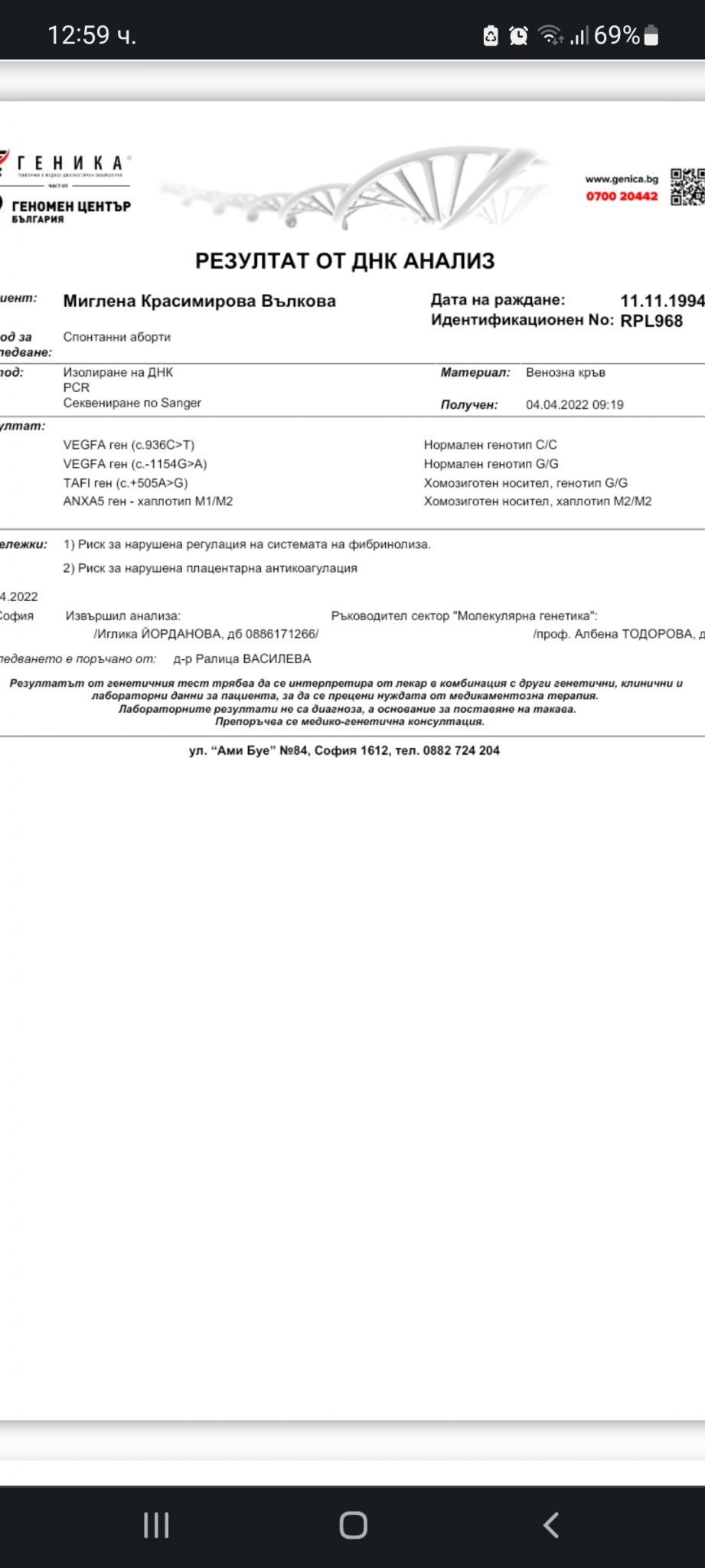 Здравейте момичета, за първи път пиша в темата. Ще съм много благодарна,да коментирате изследванията за тромбофилия