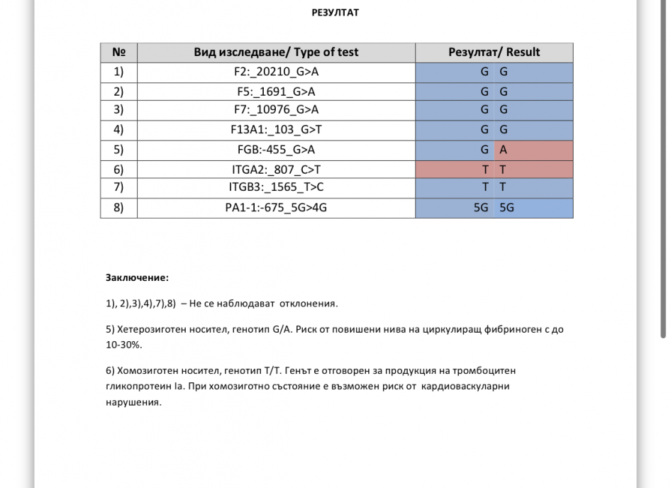 Здравейте! Бременна съм в 8гс, с нулев кръвоток към матката, опитваме да го регулираме с аспирин и фраксипарин от 0,3. Имах пуснато изследване за тафи ген 505 и имам мутация в него, днес излязоха и останалите тромбофилии - ще се радвам на коментар от вас.
