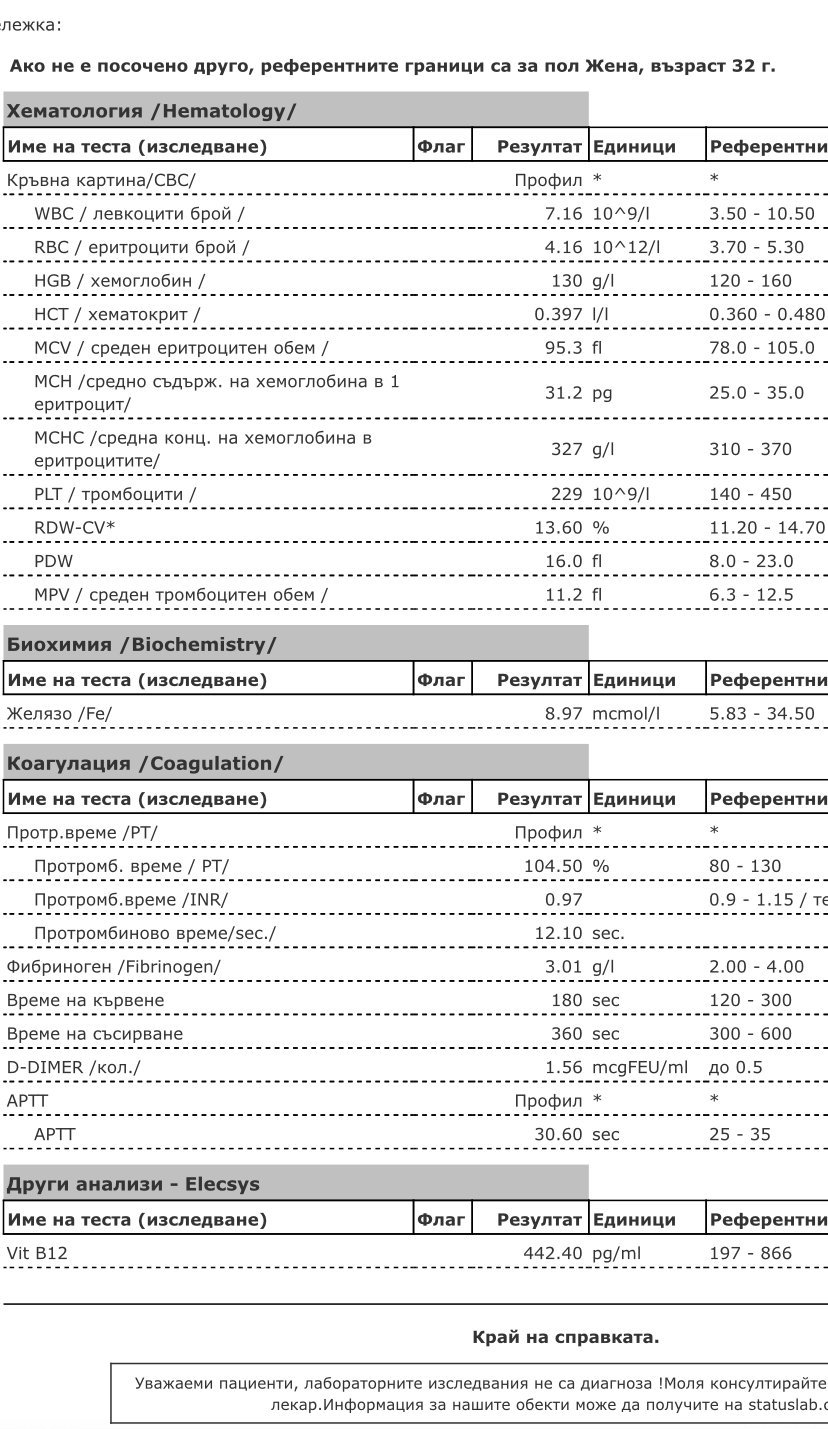 Благодаря, ще видя как са изследванията. Идната седмица за първи път ще ги пускам и вече следящият ме АГ също ще каже, ако трябва и за хематолог ще запиша час