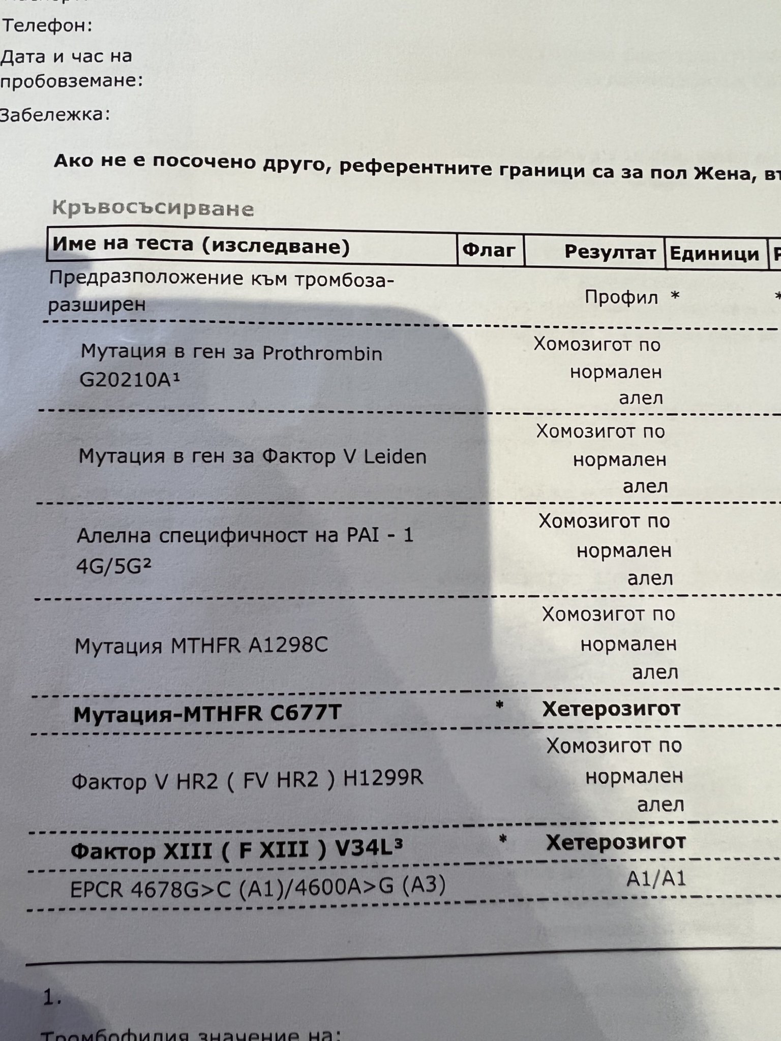 Привет излезнаха резултатите за тромбофолията.Нещо притеснително?