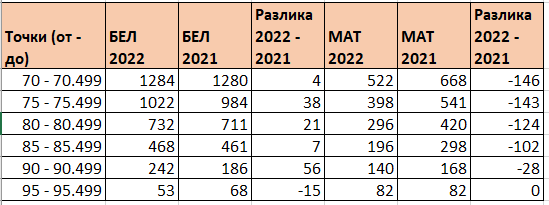 2022 г. БЕЛ - 53, 63      МАТ - 35, 32
