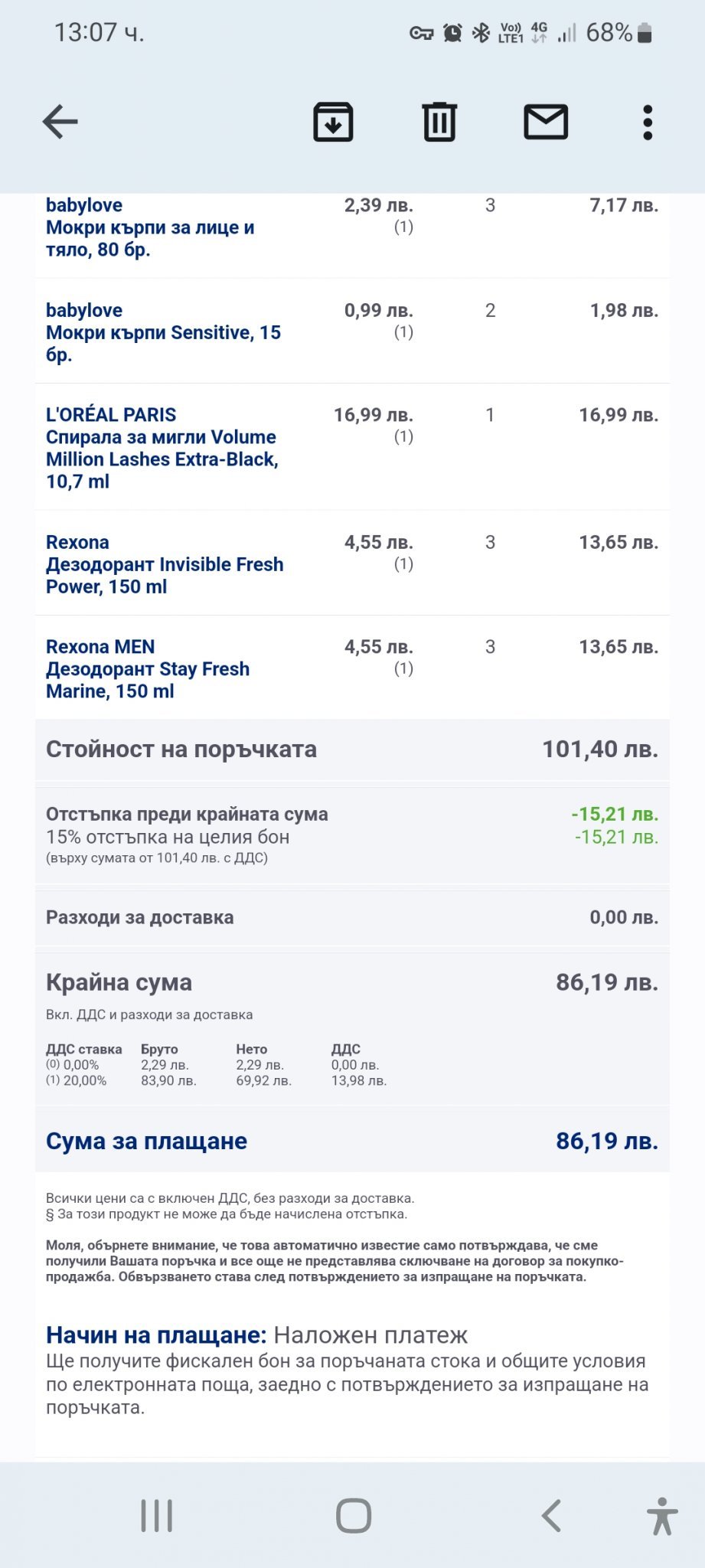 Аз вчера си поръчах, продукти за 101 лв, а ще платя 86 лв., с наложен платеж и безплатна доставка до офис на Спиди!