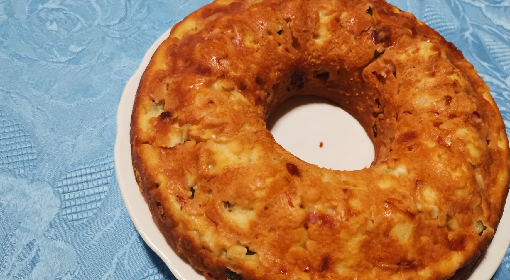 Фро, вчера видях рецептата в една кулинарна група, една жена в памет на обичаната си баба го беше направила и запомних горе-долу съставките - 2 яйца, по 100 гр шунка, сирене и кашкавал, 200 гр кисело мляко плюс половин чаена лъжичка сода в млякото, 2 чаши брашно, 50 мл олио.