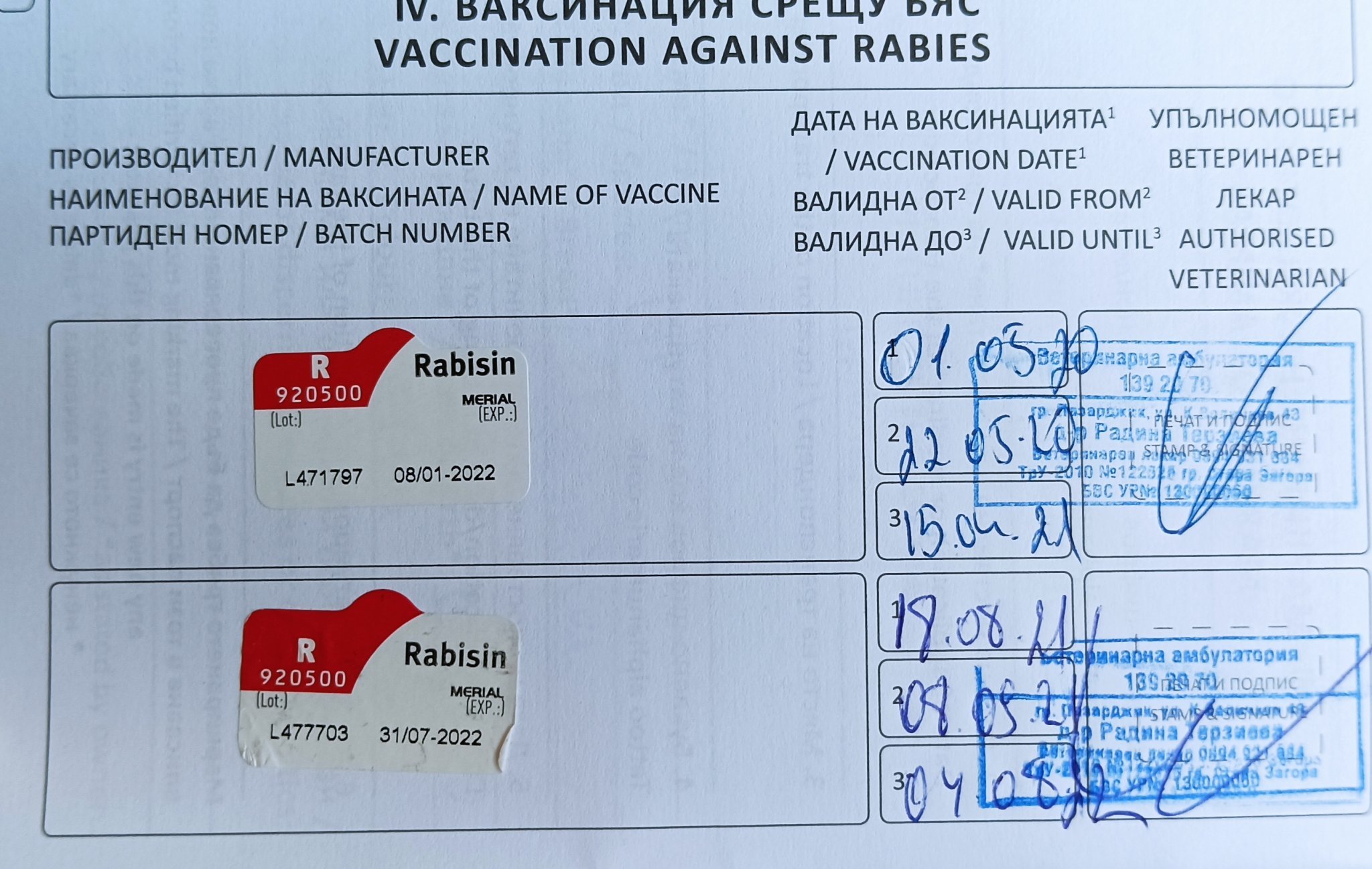 Feligen-a или аналогична не трябва да пропускаш, за бяс знам само при пътуване, че се слага, моите нямат все още такава. Ендо и ектопаразити ти е вътрешно и външно обезпаразитяване.